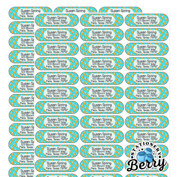 - All address label artwork is hand-drawn by Becca Bleu of Stationery Berry.