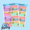 Use the Butterfly Boxes Sticker Sheet in planners, bullet journals, notebooks, and memory planners to create themed spreads that feel calm and creative. These butterfly-decorated boxes work wonderfully for habit tracking, appointment scheduling, or labeling sections of your pages. Fans of Butterflies and Stickers will enjoy how these designs combine practical structure with playful artwork, making everyday planning feel more joyful and personal. The box format keeps your layouts neat, while the butterfly accents add visual interest without overwhelming your pages.