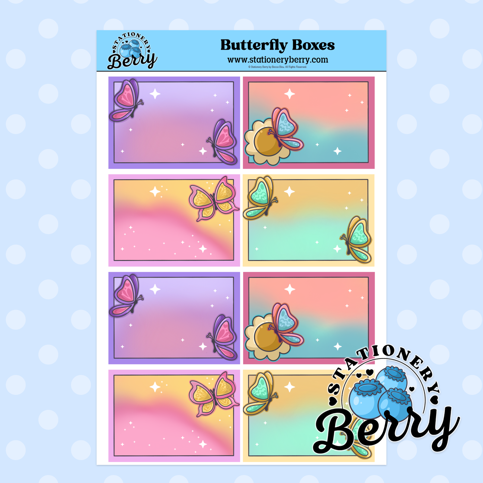 Butterfly Boxes Sticker Sheet Description