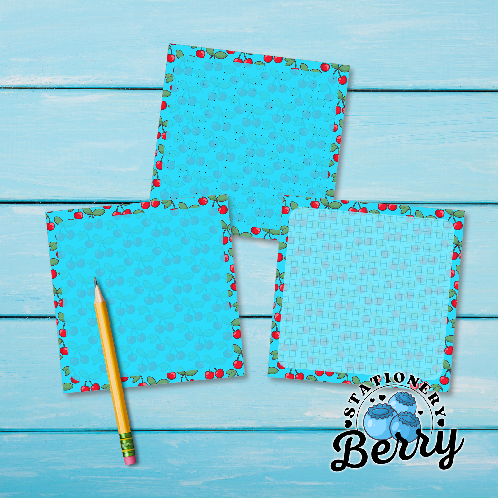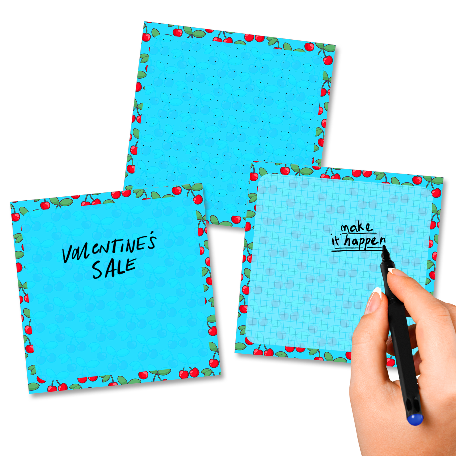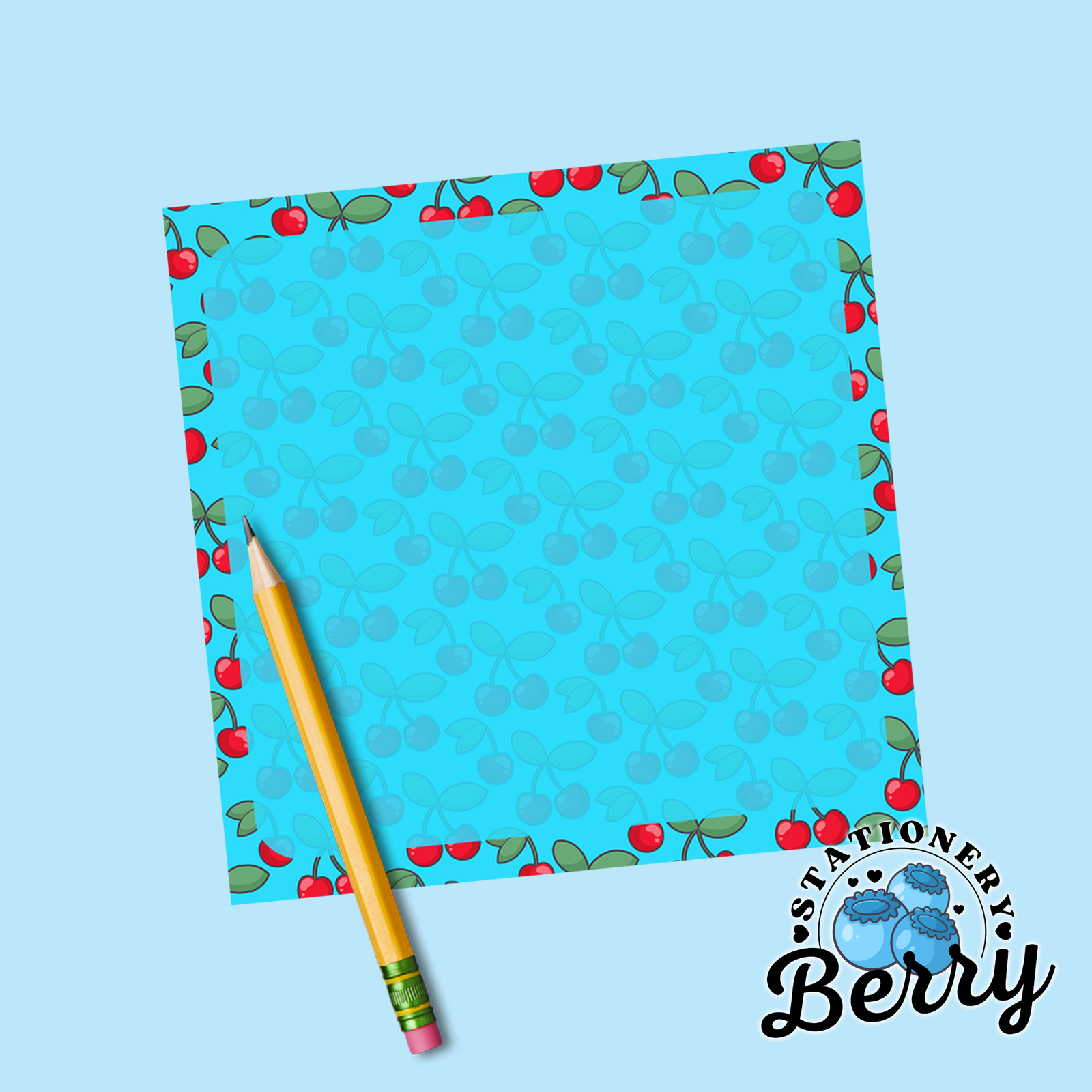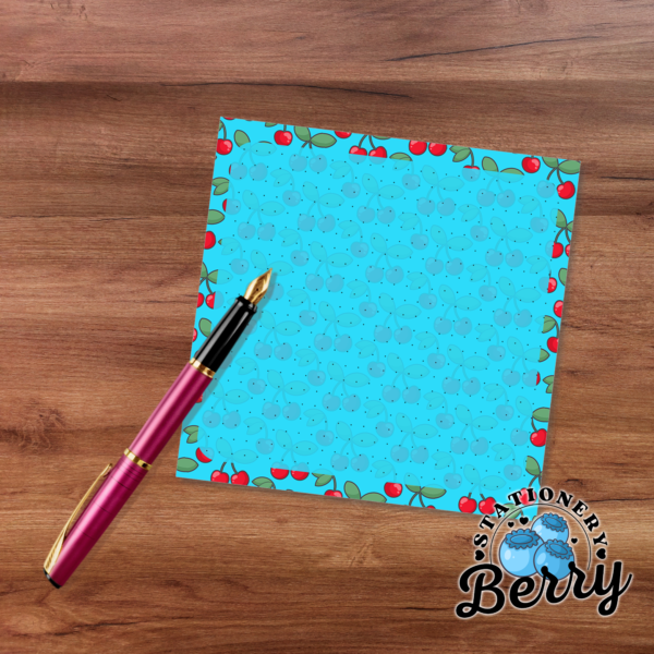 The Cherries Memo Pad is a bright and practical 4×4 memo pad designed to make everyday notes feel fresh and fun. Featuring an outer pattern of red cherries on a blue background, this memo pad blends playful charm with real writing space you can actually use.