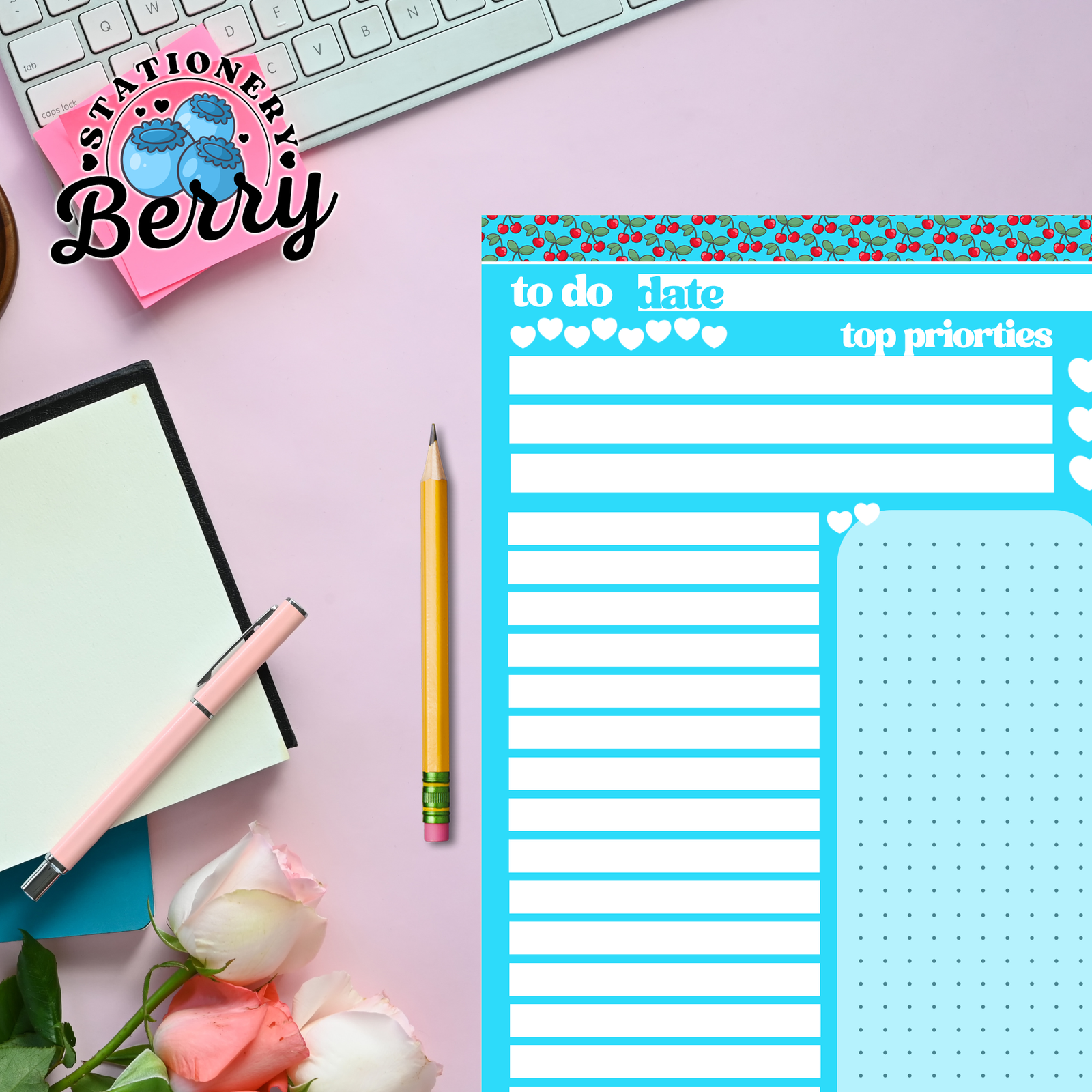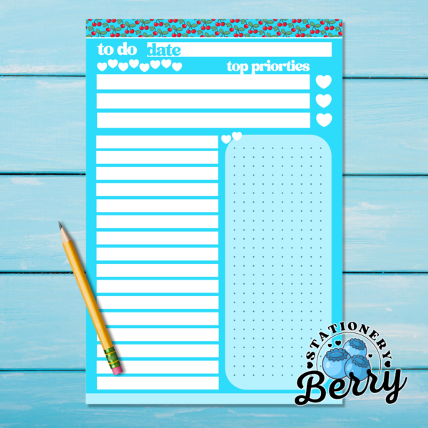 As part of my handmade collection of To Do Pads, the Cherries To Do Pad combines original artwork with a practical layout inspired by Cherries and classic stationery style. It’s perfect for students, teachers, office workers, and anyone who loves turning everyday task lists into something cute and motivating. Whether you’re organizing your weekday or planning your weekend, this pad helps make productivity feel a little sweeter.
