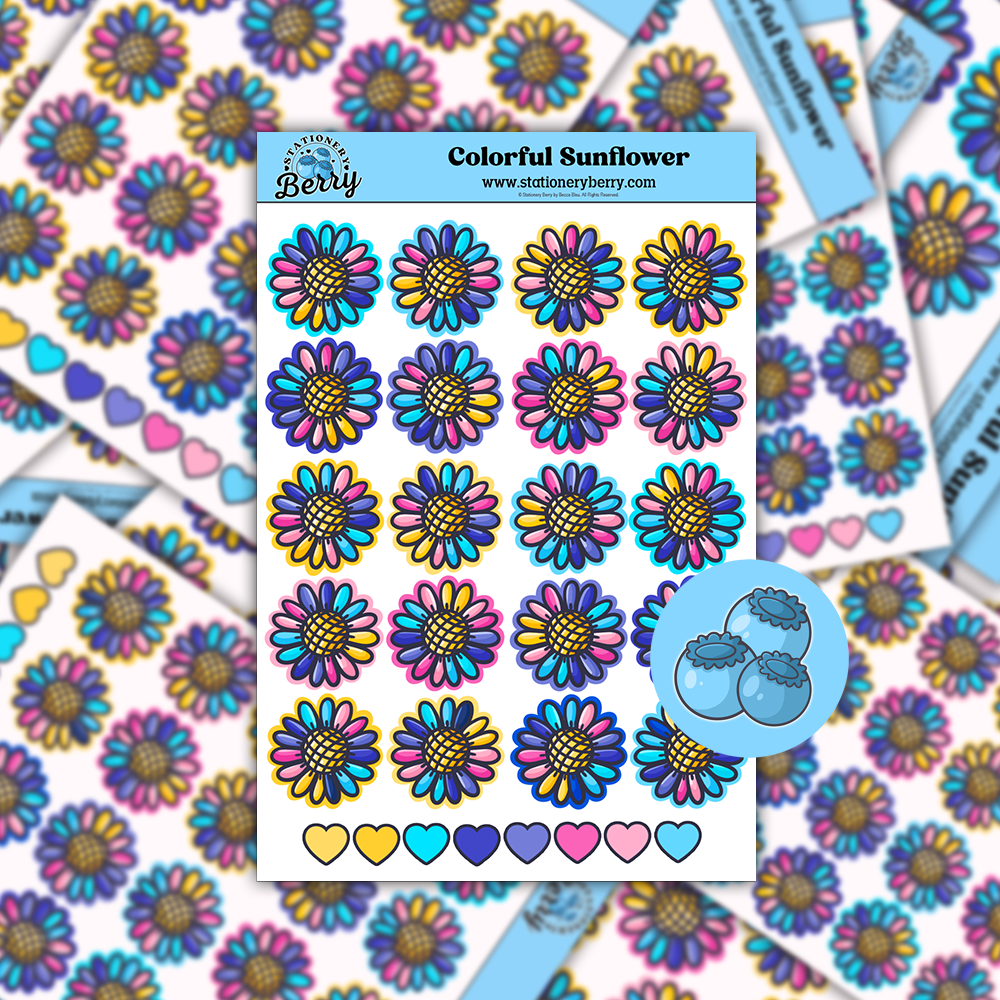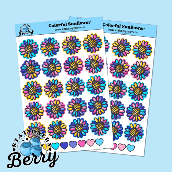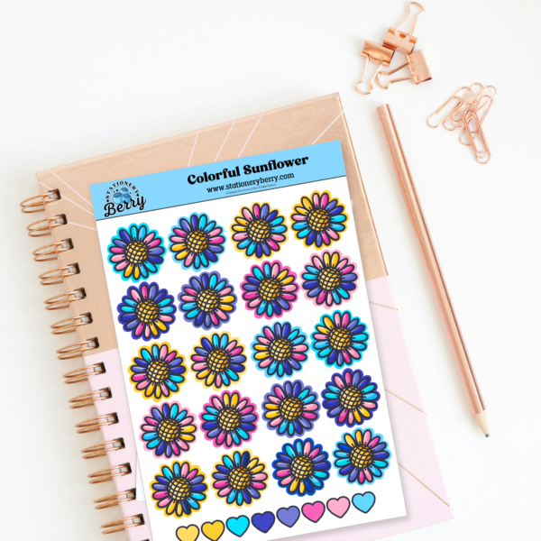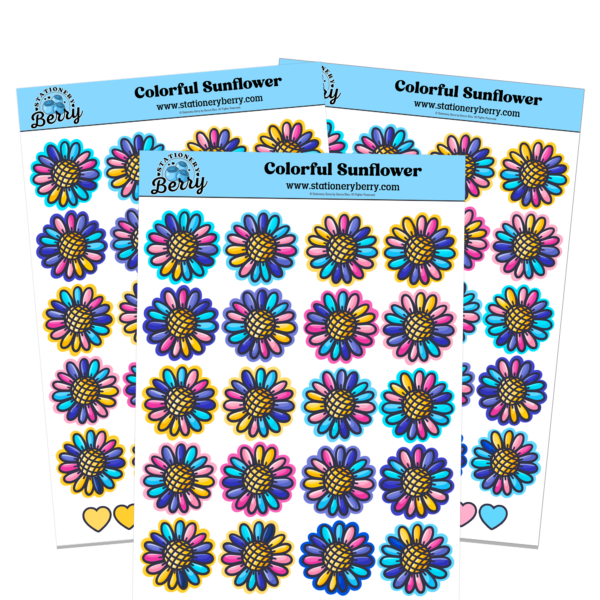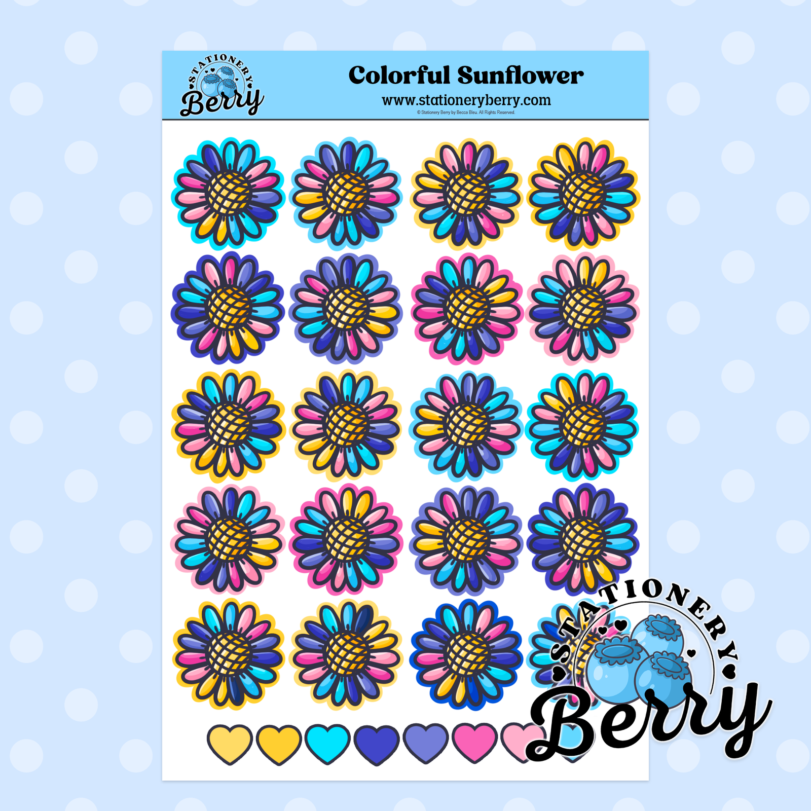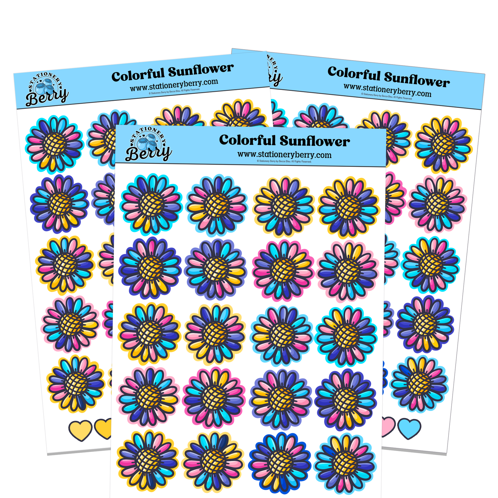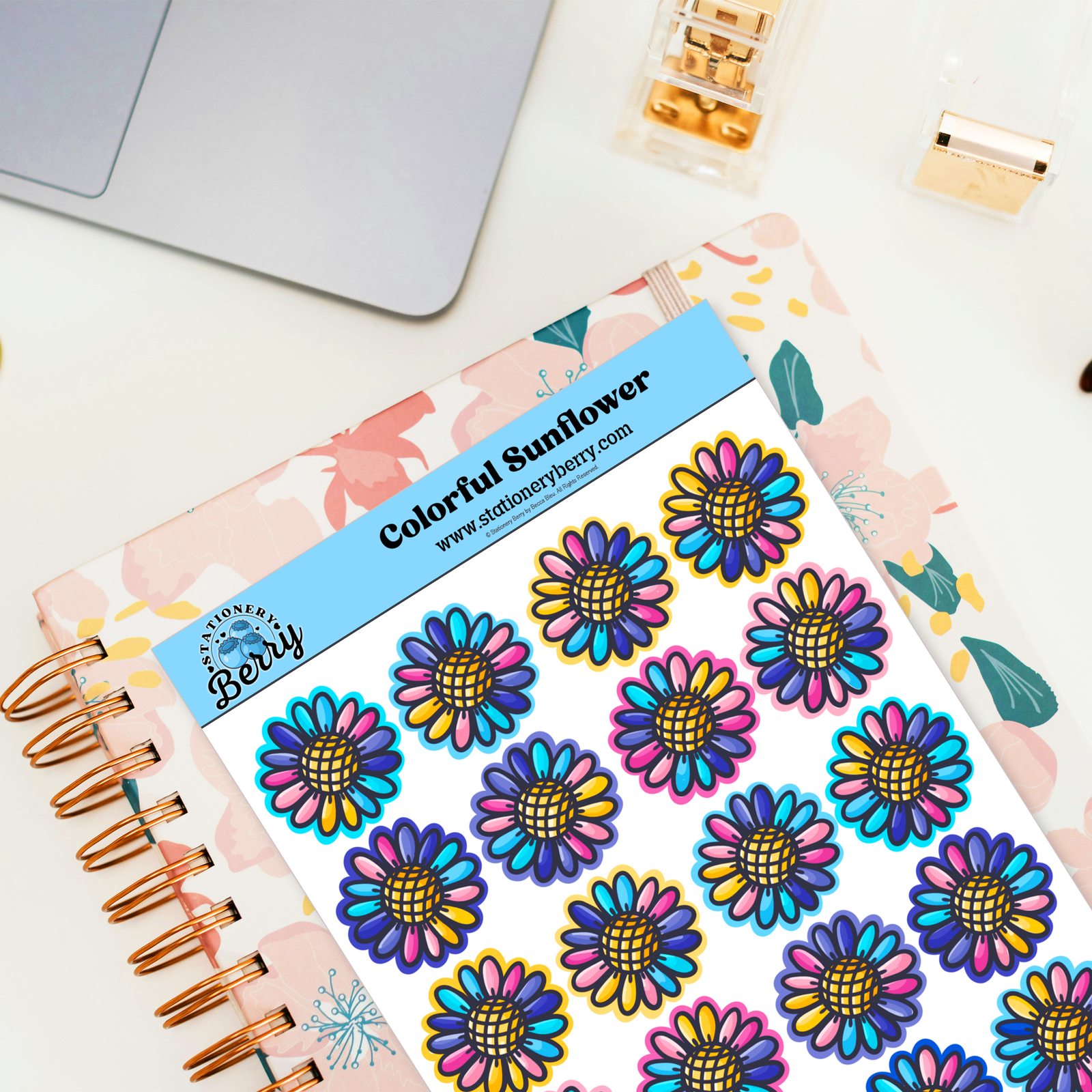 The Colorful Sunflowers Sticker Sheet features vibrant sunflower designs perfect for planners and journals. Handmade and full of cheerful charm.
