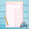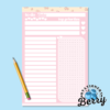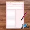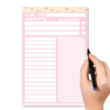 Below the priority sections, a dotted area provides flexible space for custom information. Use it for notes, reminders, appointments, or personal planning details that don’t fit neatly into a standard list. Beneath that, 16 lined rows give you plenty of room for everything else you need to do, from errands and chores to work projects and creative plans. The pink background keeps the page bright and inviting, while the daisy pattern at the top adds a decorative touch without taking away from your writing space.