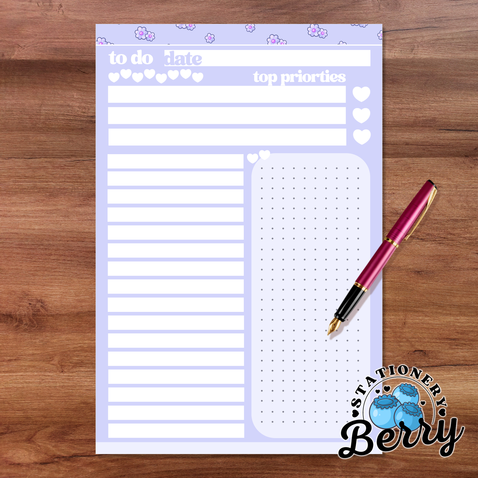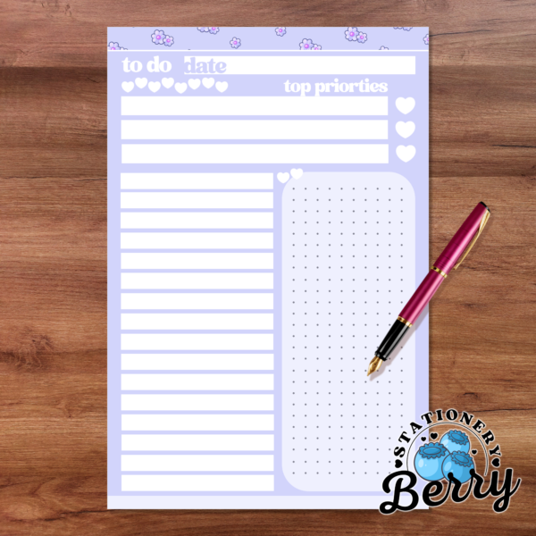 As part of my handmade collection of To Do Pads, the Cute Daisies Purple To Do Pads combine original artwork with a functional layout inspired by Daisies and sweet stationery aesthetics. These To Do Pads are perfect for students, teachers, office workers, and stationery lovers who want their To Do lists to feel pretty and motivating. Whether you’re planning a busy weekday or organizing a relaxed weekend, this pad turns everyday tasks into something joyful.