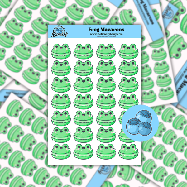Frog Macaron Sticker Sheet Description