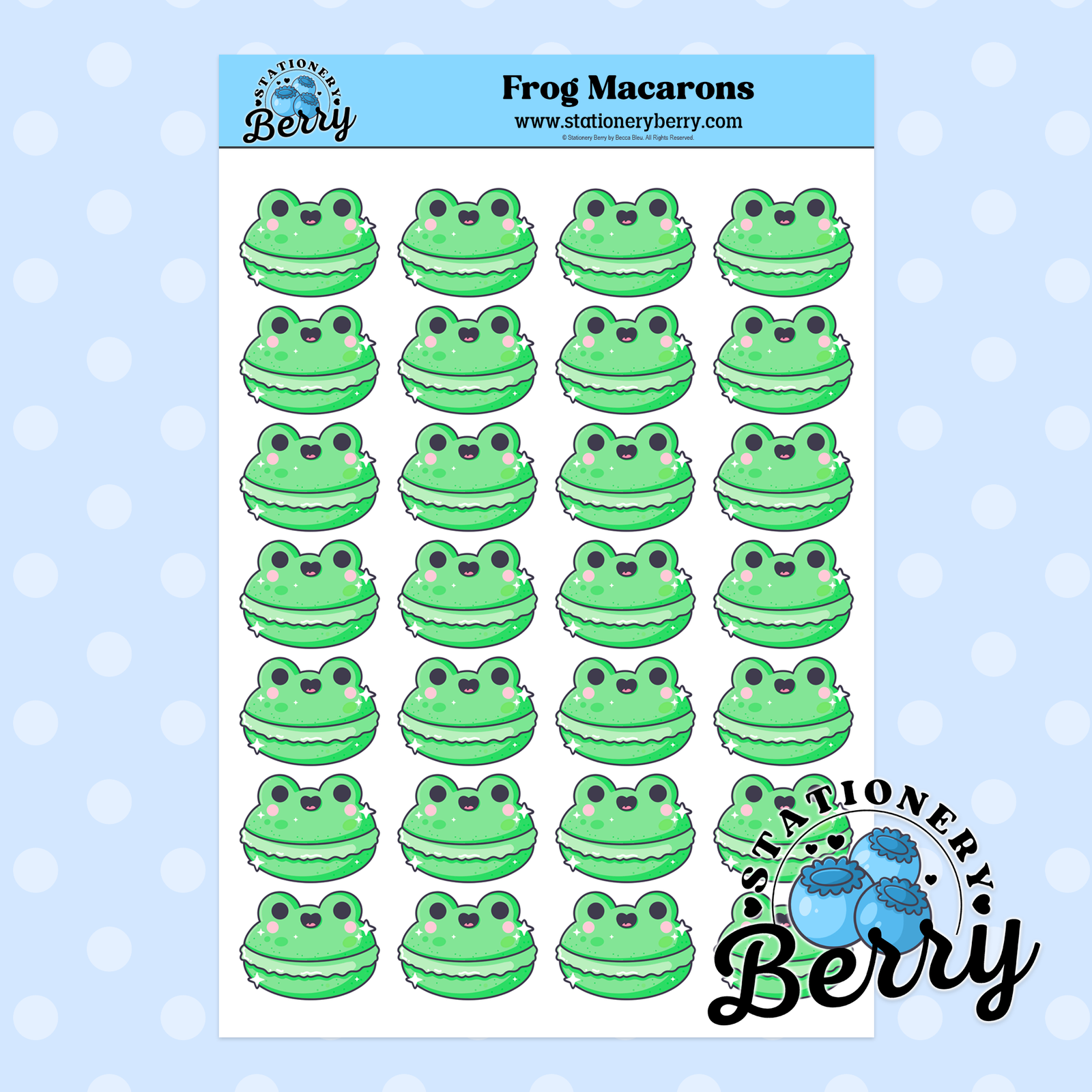 Frog Macaron Sticker Sheet Description