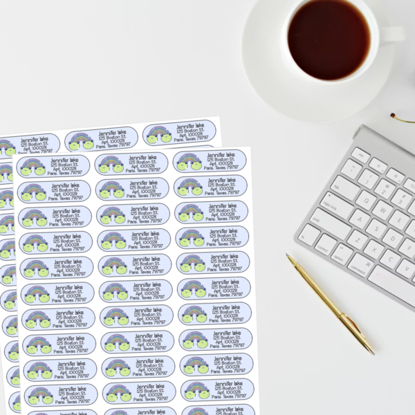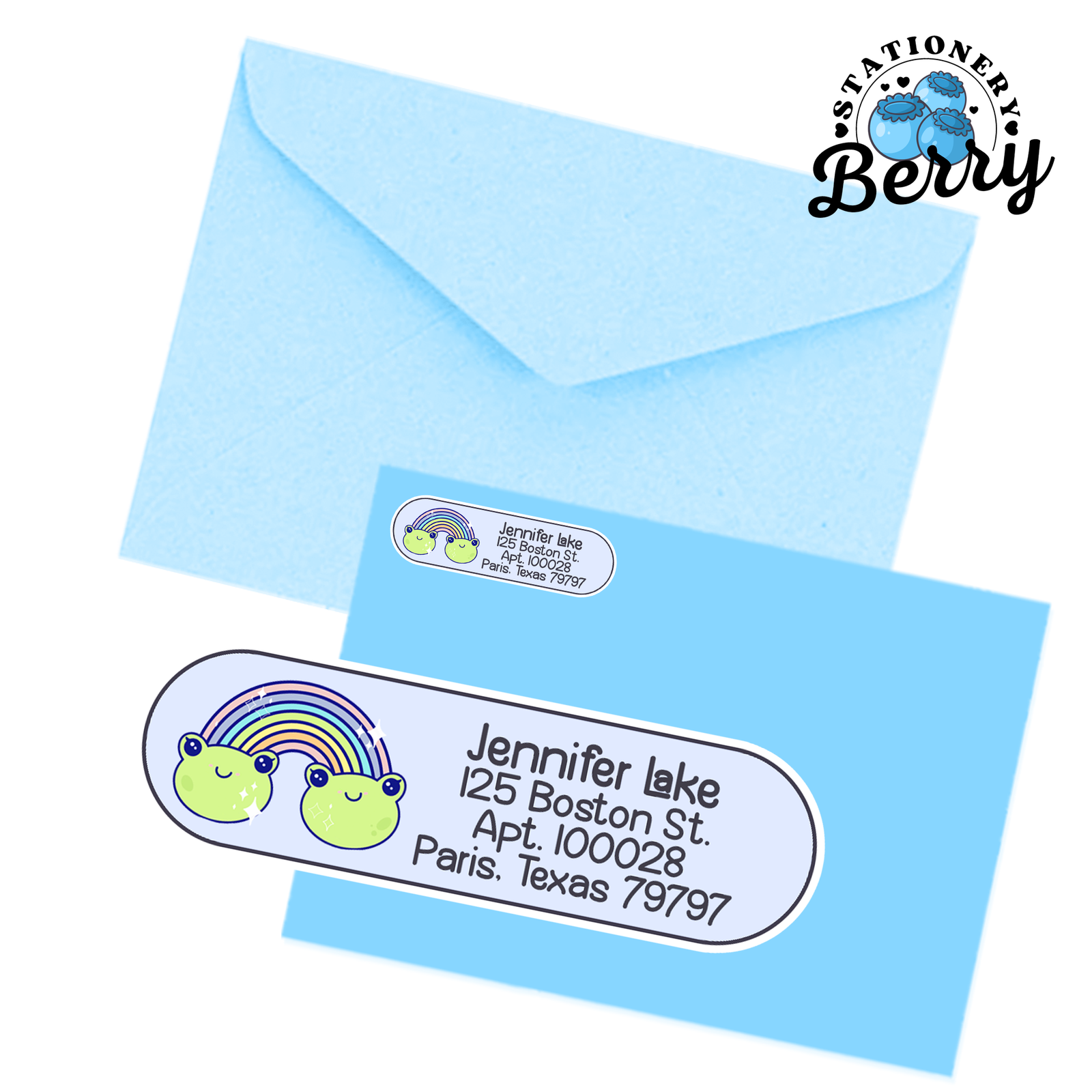 Available in sets of 1, 5, 10, or 15 sheets, Froggy Rainbow Address Labels work just as well for occasional mailing as they do for high-volume senders. Use them on thank-you notes, holiday cards, baby shower invitations, or even small business packages to add a friendly, handmade touch. The light blue background pairs beautifully with white, pastel, or kraft envelopes, making these labels versatile for many mailing styles.