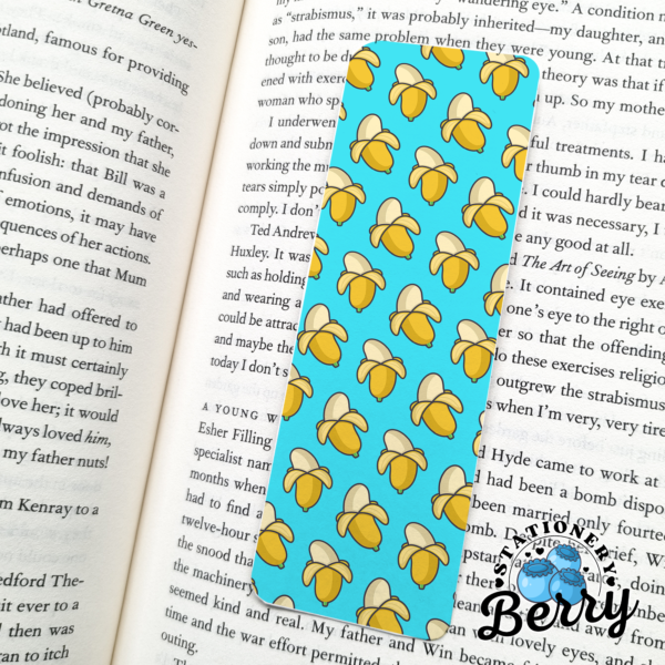 The Going Bananas Blue Bookmark also works beautifully as a planner accessory, journal companion, or decorative accent for notebooks and stationery collections. Slip it into a recipe book in the kitchen, a sketchbook on your desk, or a travel journal in your bag for a little burst of happiness wherever you go. Its playful banana theme pairs well with colorful stationery, fruit-themed designs, and cute desk décor. The Going Bananas Blue Bookmark makes a great small gift for fruit lovers, students, teachers, and anyone who enjoys bright, whimsical stationery. Use it on its own or bundle it with other bookmarks and paper goods to create a fun and coordinated reading set that turns everyday pages into something joyful.