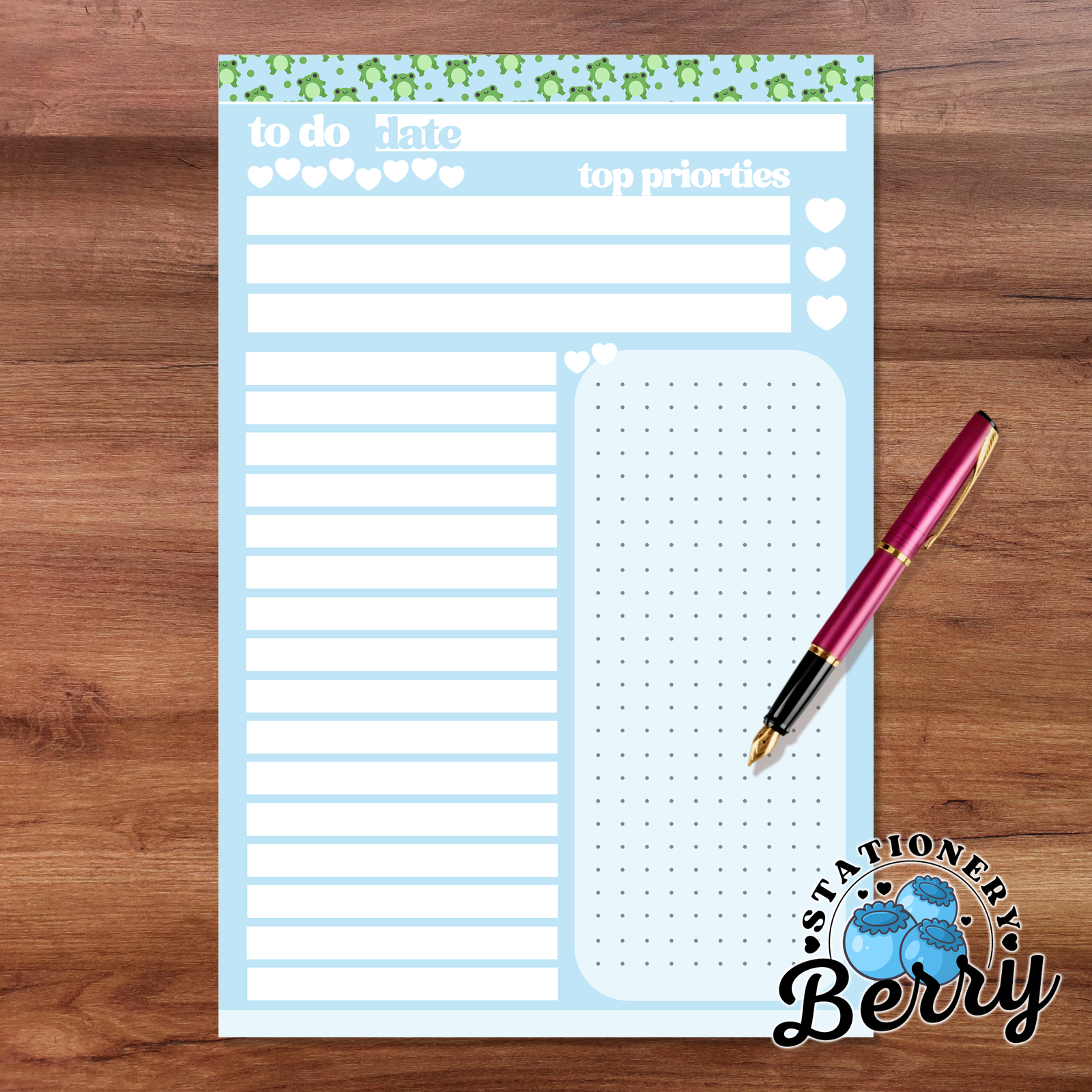 All of my To Do Pads are completely hand-drawn and handmade by me, Becca Bleu, making each Little Frogs To Do Pad a unique design you won’t find anywhere else. If you love Frogs, soft blue stationery, and functional To Do Pads that balance cuteness with productivity, this pad is a delightful way to stay organized while enjoying your daily routine.