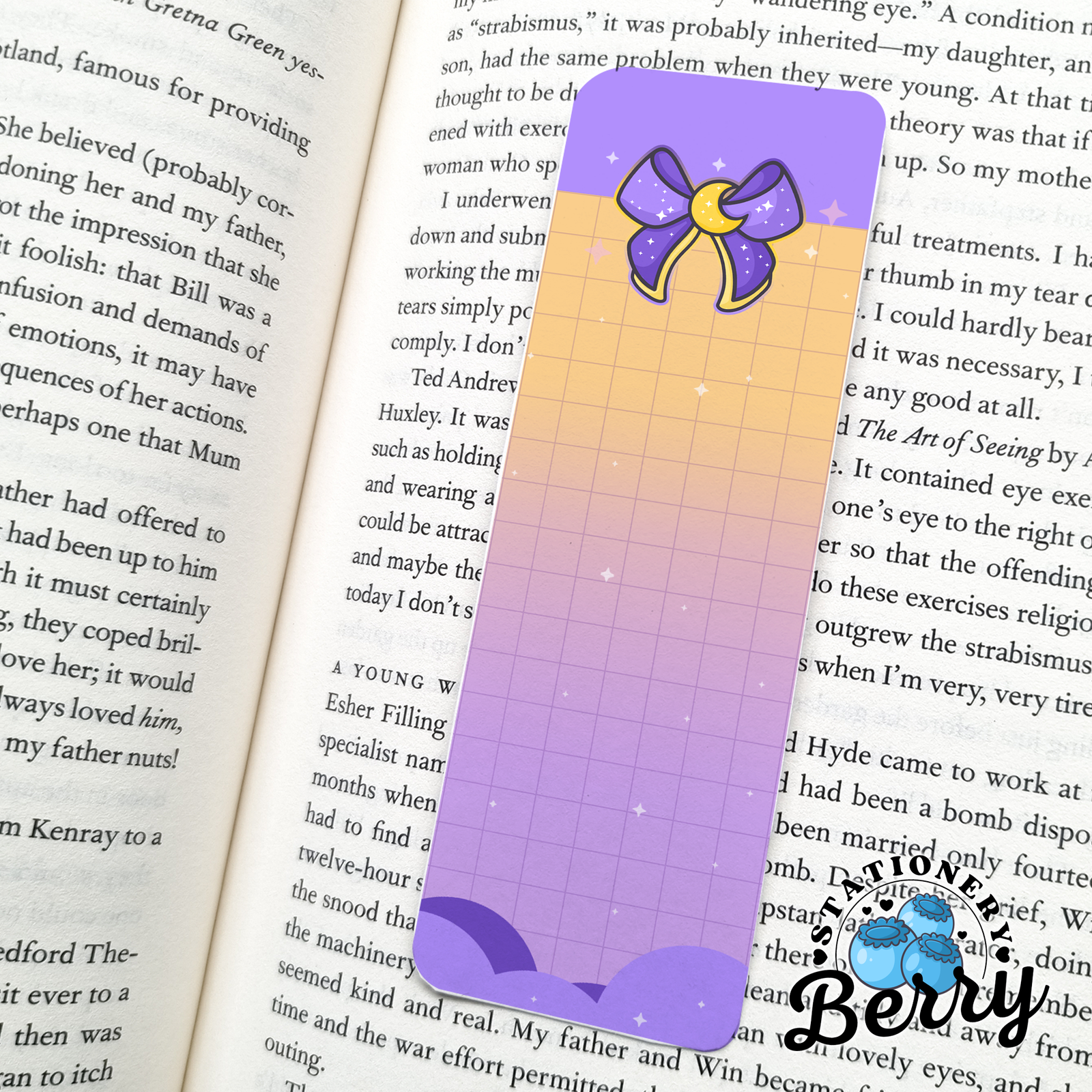 Use the Magical Moon Bow Purple Bookmark to hold your place in novels, planners, sketchbooks, or journals while protecting your pages from creases and wear. It is perfect for bedtime reading, study sessions, or daily planning when you want your stationery to feel special and inspiring. Fans of Bows and Bookmarks will appreciate how the Magical Moon Bow Purple Bookmark blends graceful design with everyday usefulness.