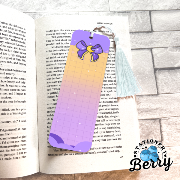 The Magical Moon Bow Purple Bookmark also makes a thoughtful gift for book lovers, fantasy fans, and anyone who enjoys celestial or bow-themed accessories. Slip it inside a favorite book as a surprise or pair it with coordinating notebooks and pens for a complete reading set. Whether you are enjoying a cozy novel or organizing your thoughts in a planner, the Magical Moon Bow Purple Bookmark adds a gentle touch of magic and beauty to every page you turn.