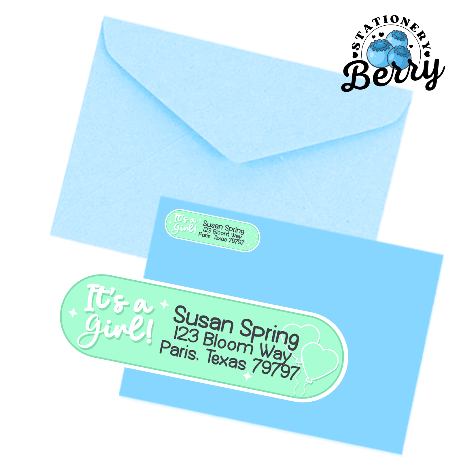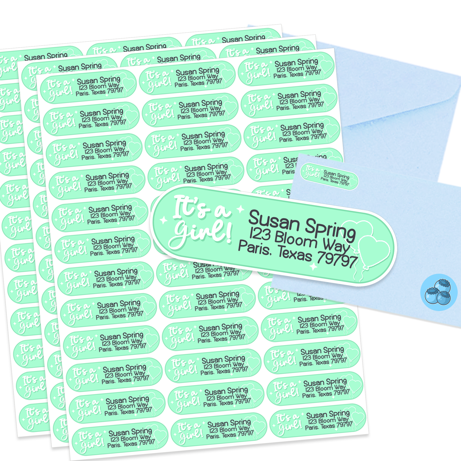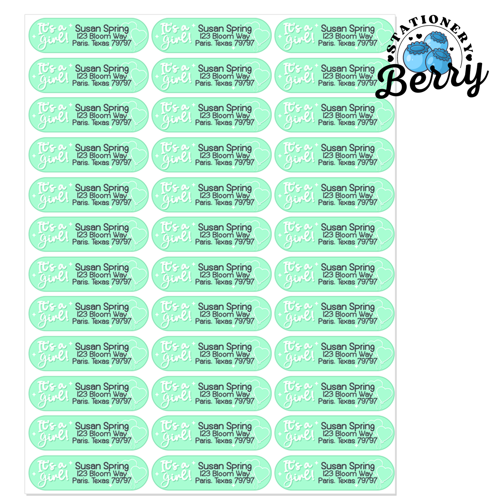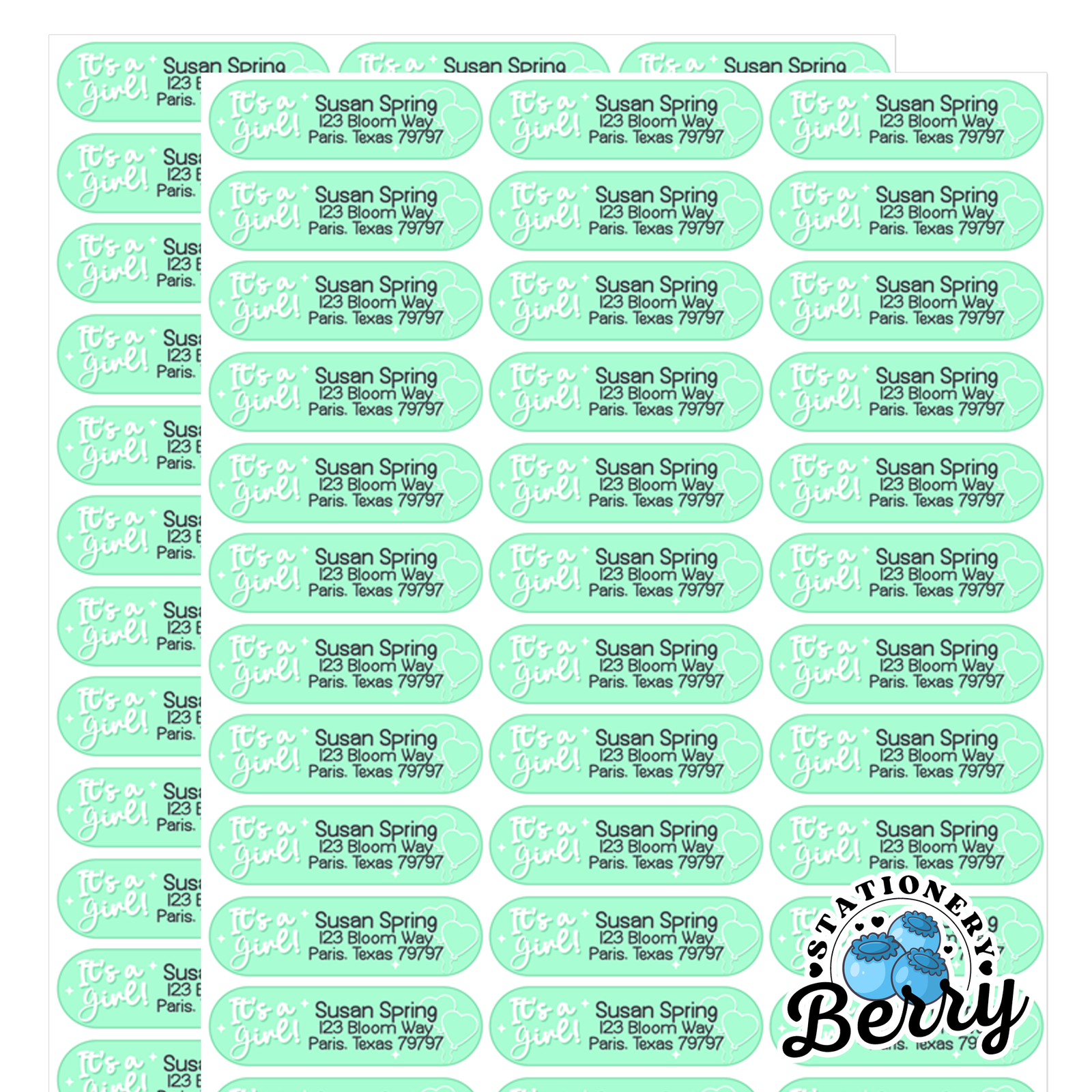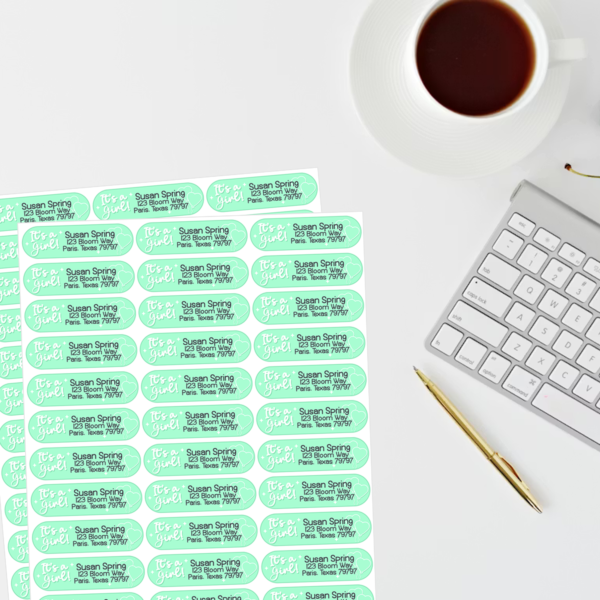 Mint It’s A Girl Address Labels are a lovely way to share your happy announcement while keeping your envelopes neat, coordinated, and full of charm. Each sheet includes 36 labels designed with the cheerful phrase “It’s A Girl!” set against a soothing mint green background. If you’re searching for Baby Girl and Address Labels that feel both playful and elegant, this design offers a perfect balance of softness and celebration.