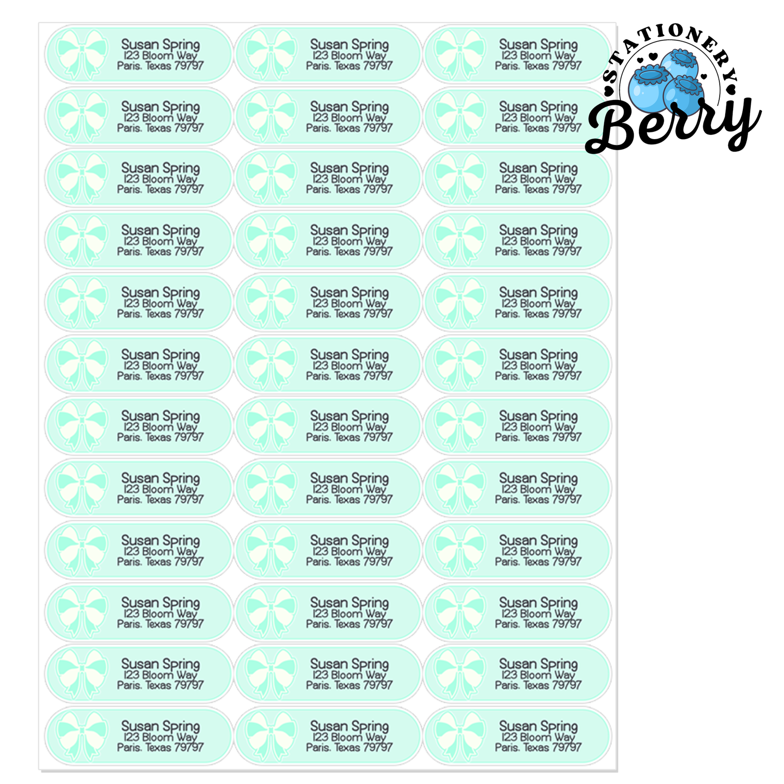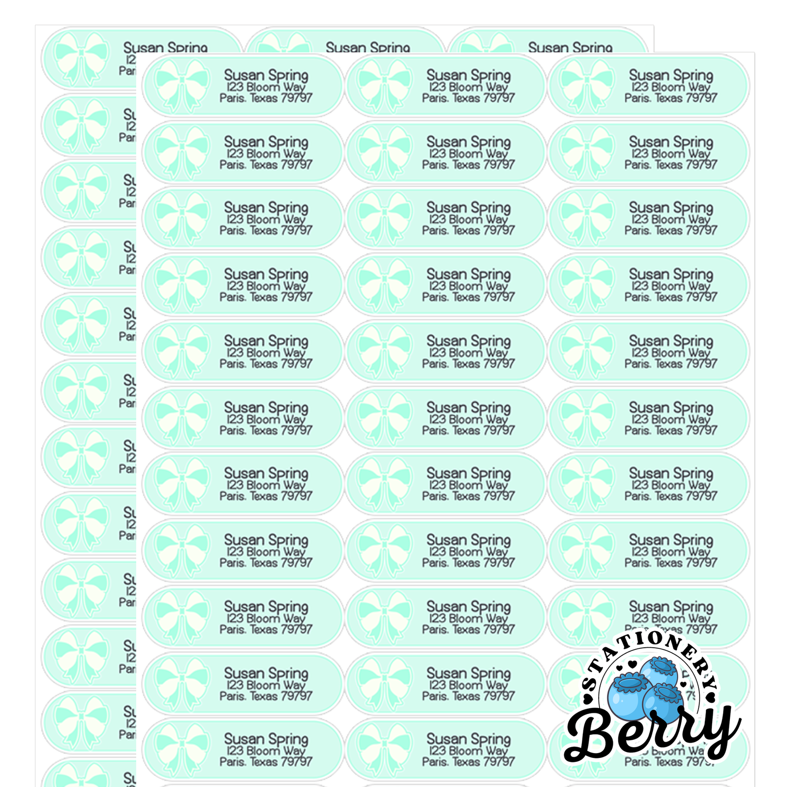 Mint Pretty Bows Address Labels