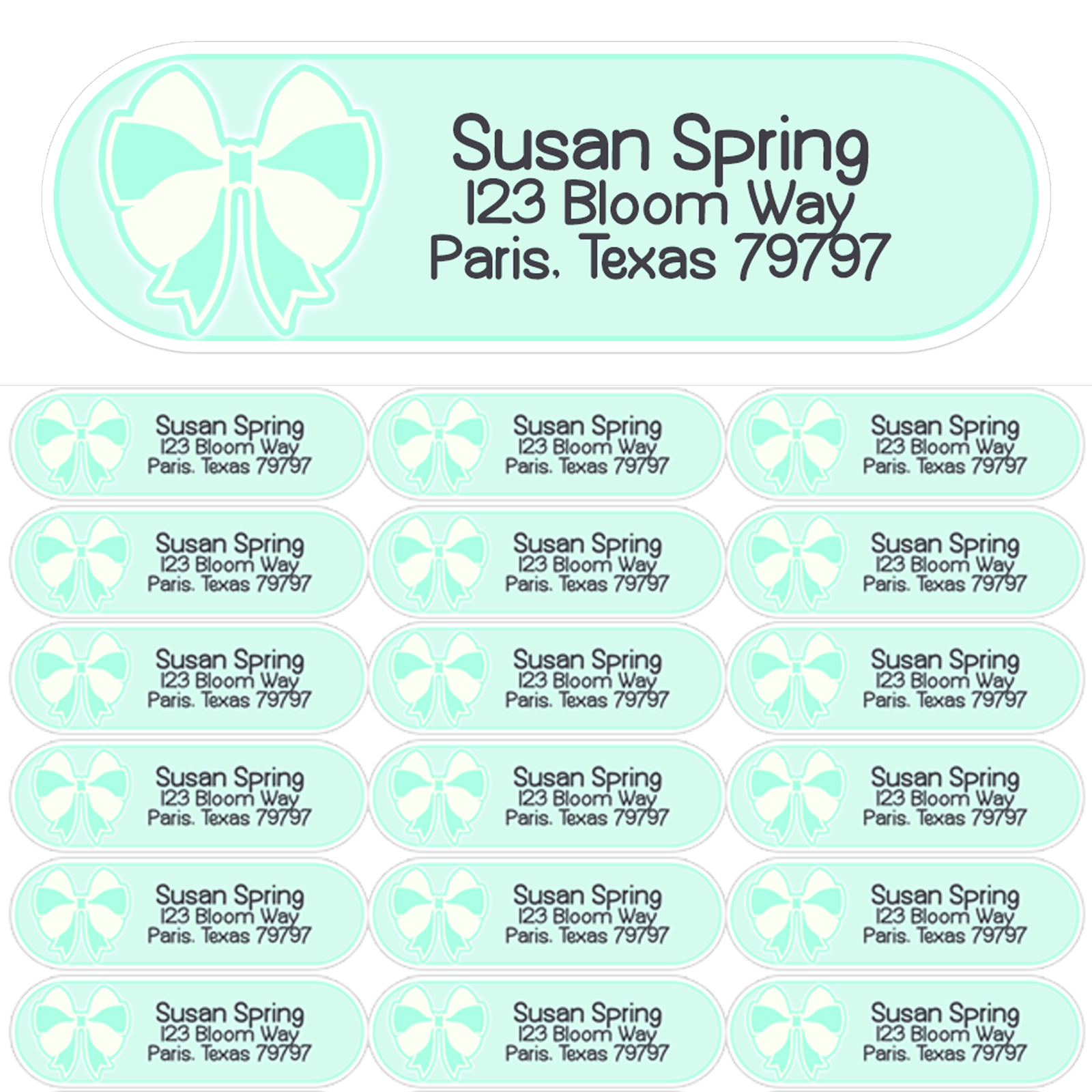 Mint Pretty Bows Address Labels Description