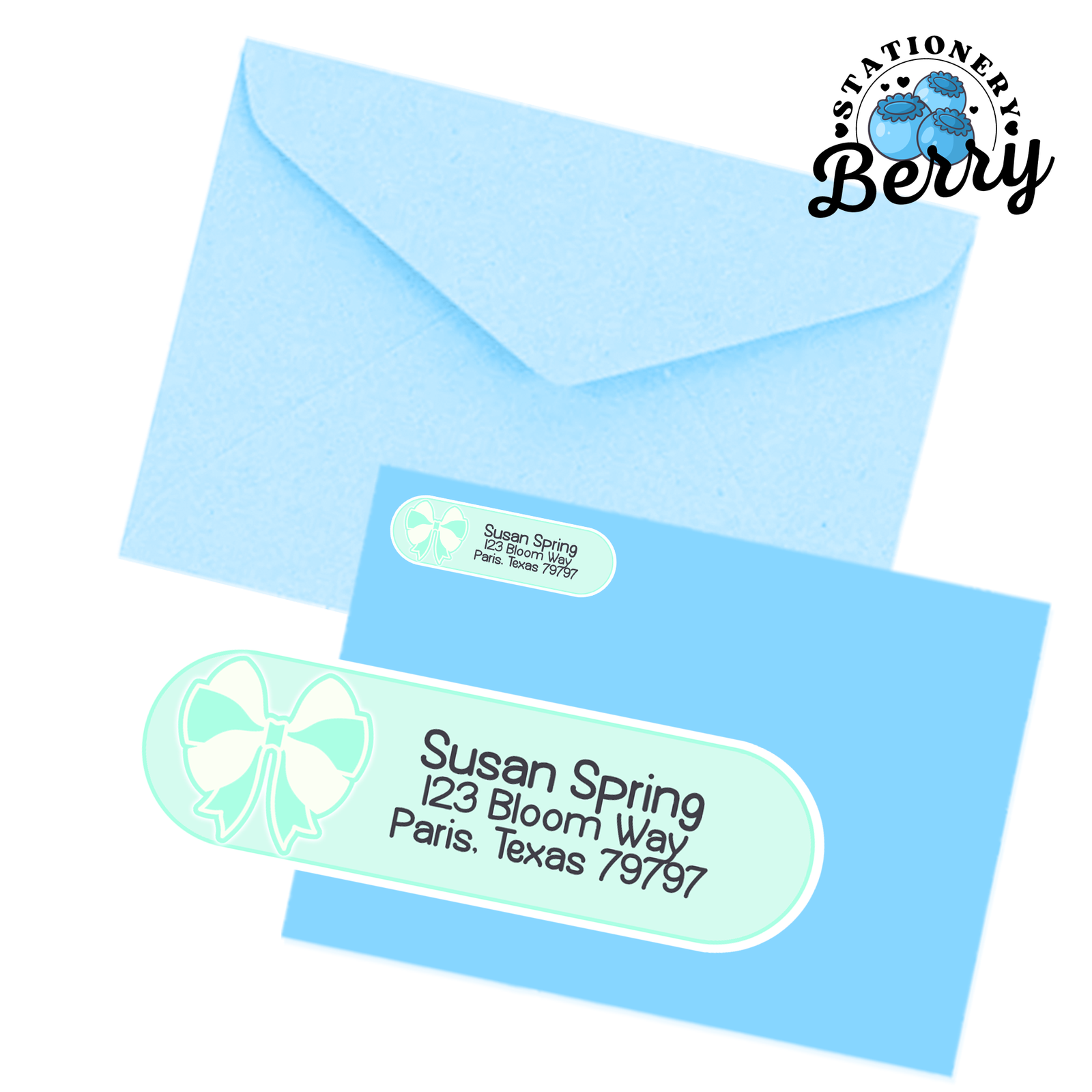 - All address label artwork is hand-drawn by Becca Bleu of Stationery Berry.