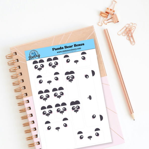 Use the Panda Bear Sticker Sheet in planners, bullet journals, notebooks, and memory planners to create themed spreads that feel fun and inviting. These panda box stickers work especially well for daily to-do lists, appointment scheduling, or labeling sections of your pages. Fans of Pandas and Stickers will appreciate how these designs combine cute character art with practical structure, helping your planner feel organized without losing its charm. The box format keeps your writing space clear while the panda faces add a cheerful focal point to each page.