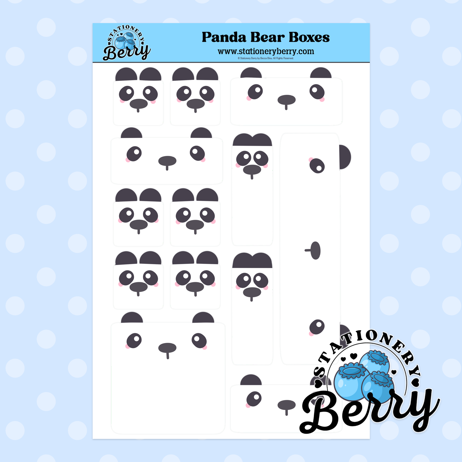 Use the Panda Bear Sticker Sheet in planners, bullet journals, notebooks, and memory planners to create themed spreads that feel fun and inviting. These panda box stickers work especially well for daily to-do lists, appointment scheduling, or labeling sections of your pages. Fans of Pandas and Stickers will appreciate how these designs combine cute character art with practical structure, helping your planner feel organized without losing its charm. The box format keeps your writing space clear while the panda faces add a cheerful focal point to each page.