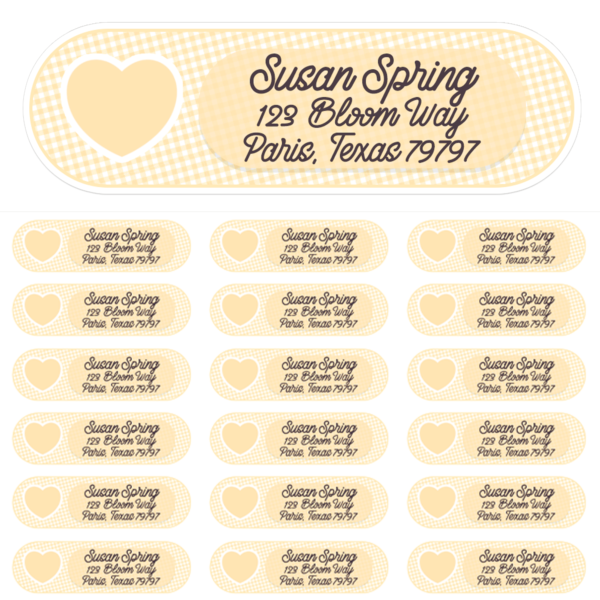 Peach Gingham Hearts Address Labels Description
