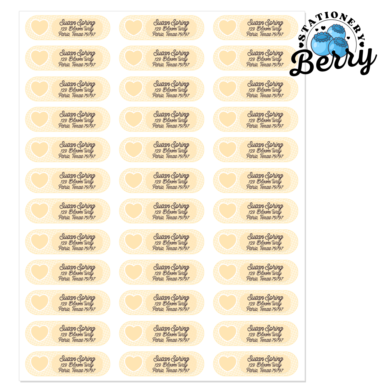 - All address label artwork is hand-drawn by Becca Bleu of Stationery Berry.