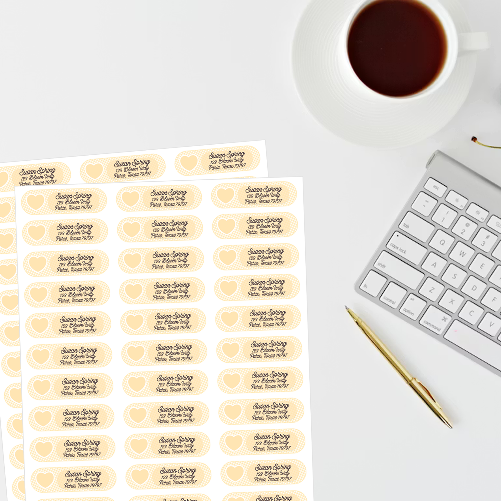 These labels are perfect for addressing envelopes for pen pal letters, greeting cards, party invitations, and thank-you notes. The soft peach tones pair nicely with white, cream, blush, and kraft envelopes, making Peach Gingham Hearts Address Labels easy to coordinate with many paper styles. They are also great for small business packaging, organizing outgoing mail, or labeling personal stationery with a sweet decorative touch.