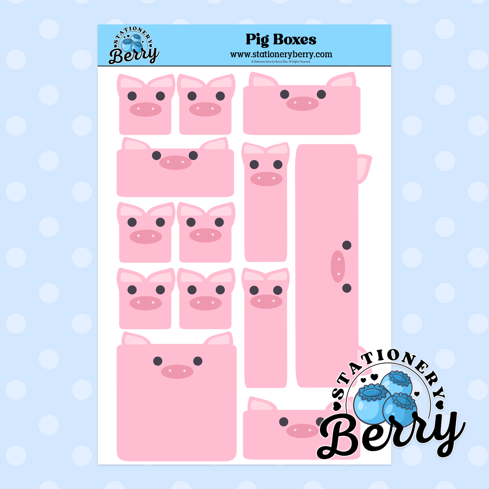 Every Piggy Boxes Sticker Sheet features original hand-drawn artwork and is carefully assembled by me, Becca Bleu. Because each Sticker Sheet is handmade, no two are exactly alike, and you won’t find these designs anywhere else. This sheet is perfect for creative planners, stationery collectors, and anyone who enjoys adding charming animal details to their everyday planning routine.
