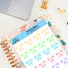 Use the Pretty Bows Sticker Sheet in planners, bullet journals, notebooks, and memory planners to create elegant weekly layouts, highlight special days, or frame important notes. The pastel bows work wonderfully as page accents, corner decorations, or small details to mark events and reminders. Fans of Bows and Stickers will love how these designs add visual interest without overpowering your writing space. The soft colors make them easy to pair with other stickers, washi tape, or themed pages, helping you build cohesive and calming spreads.
