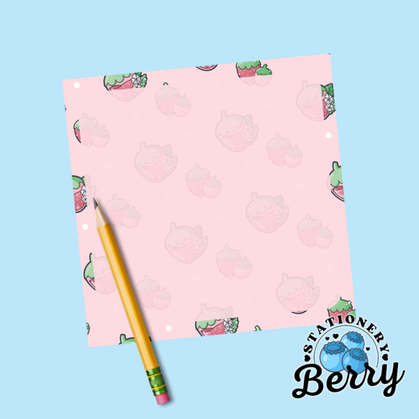 The Sparkle Strawberry Memo Pad is a handmade 4×4 Memo Pad featuring sparkly Strawberries on a pink background. Available in dots, blank, grids, or a bundle of all three.
