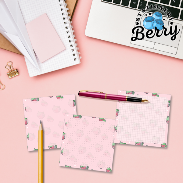 The Sparkle Strawberry Memo Pad is designed for stationery lovers who want playful art without sacrificing function. Measuring a practical 4×4 size, this Memo Pad gives you more writing space than tiny decorative notes while remaining compact enough for desks, planners, and bags. It is available in dots, blank, and grids, or as a bundle of all three, allowing you to choose the format that fits your writing and planning style. The dot layout is perfect for lists and light journaling, the grid layout helps keep notes neat and structured, and the blank layout is ideal for freeform thoughts, doodles, and creative ideas.