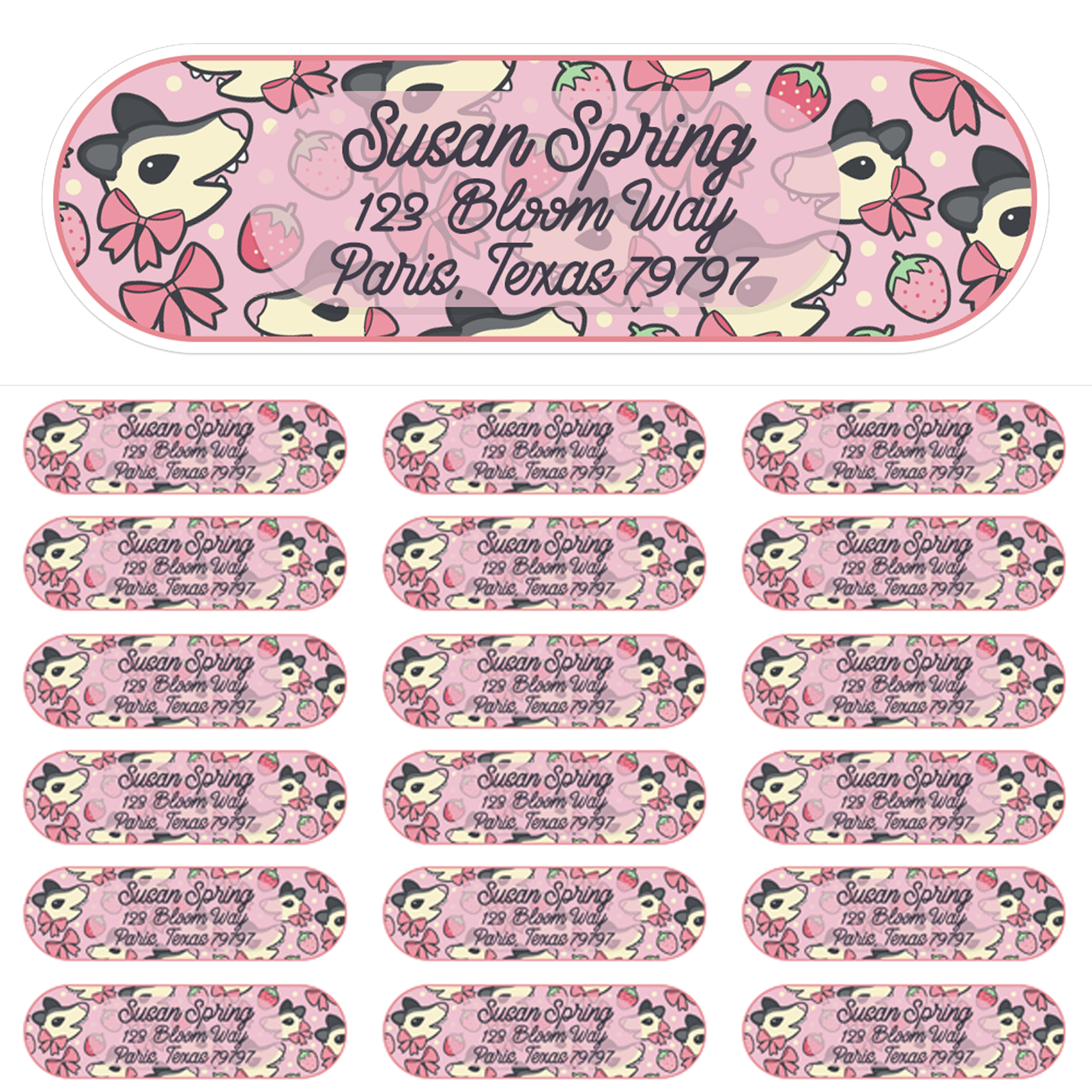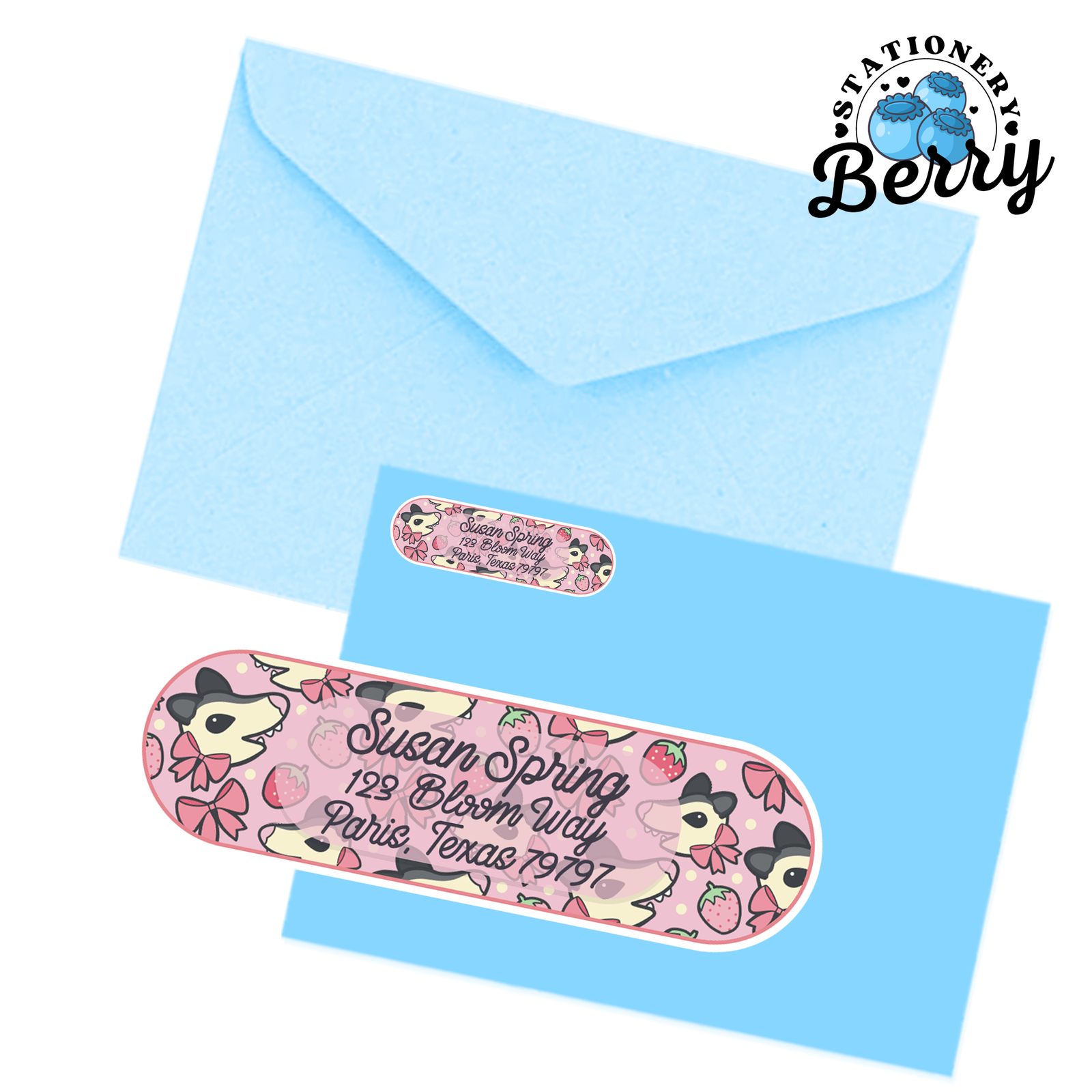 Use Strawberry Possums Address Labels on outgoing mail, pen pal letters, birthday cards, and thank you notes to instantly add personality to your envelopes. They are also wonderful for small shop packaging, return address stickers, subscription mail, and handmade orders, helping your packages stand out while still feeling warm and friendly. The pink background and bow accents create a sweet, cozy look that pairs beautifully with pastel stationery, kraft envelopes, and decorative tape.